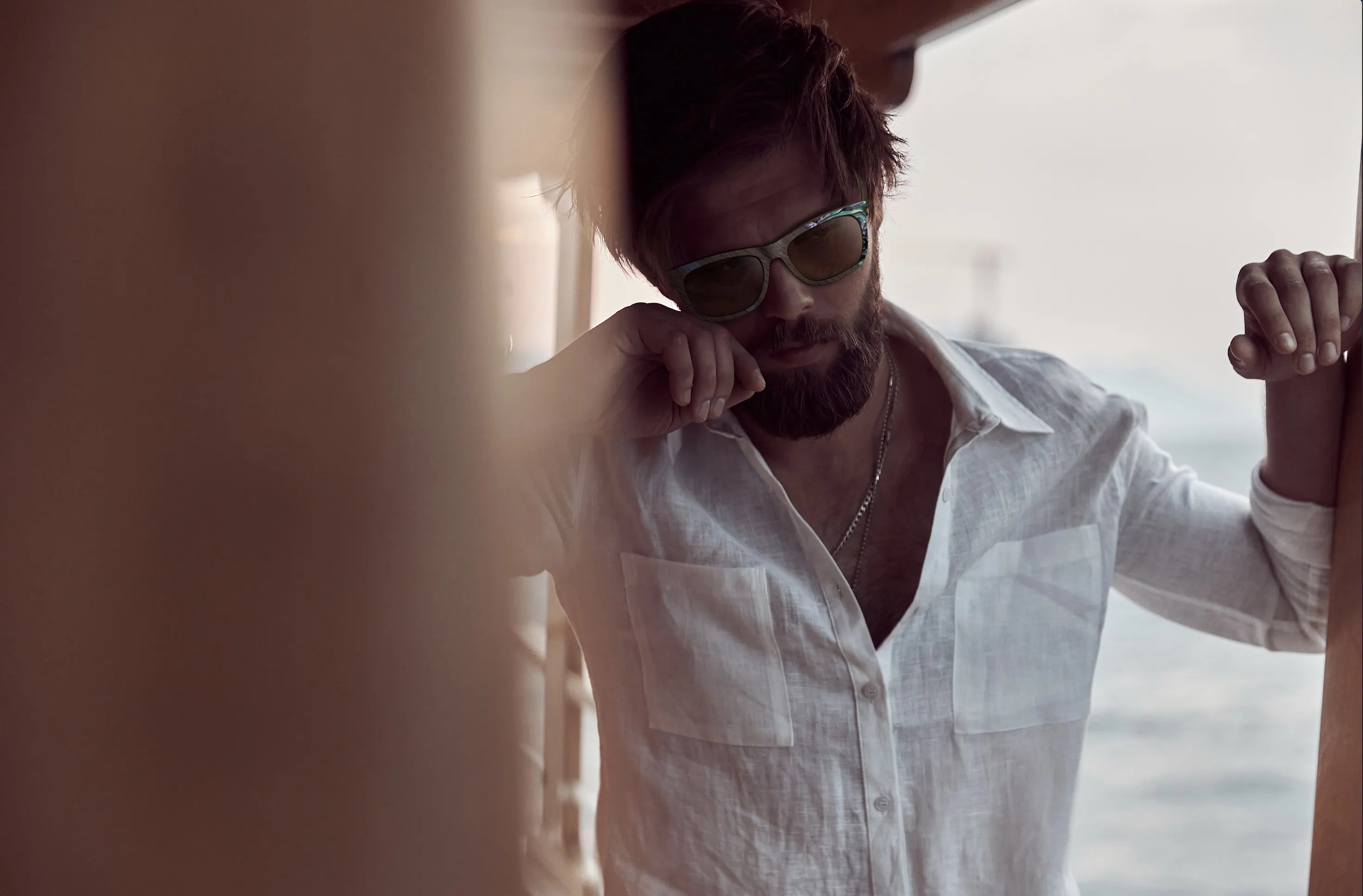 The history of the sea is filled with bold adventurers. Our seafarer collection plays with elegance and eccentricity. Frames in the Seafare Collection play with abalone shells from the ocean, italian ebony from the island of Capri, and draw inspiration from decks on yachts or the colors of the sea.
